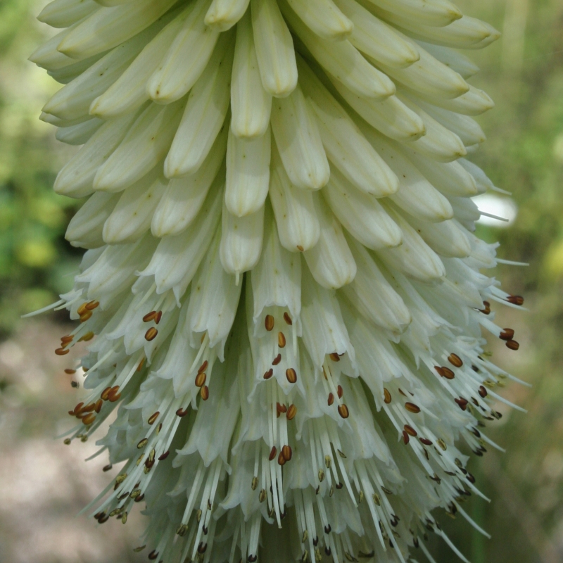 Lange volle pijlvormige bloemaar uitbloeiend naar wit, lange stevige stengel, grasachtig blad, lang- en doorbloeiend, robuust, polvormend, de vlezige wortelstok verticaal planten, niet te droge voedzame grond, goede drainage, open plek, scheuren en planten tot september, winterdek (blad opbinden en omringen door laag blad) en dood blad vroegtijdig verwijderen i.v.m. wortelrot, insectenplant, oorspronkelijk afkomstig uit Zuid-Afrika