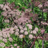 Veelstralig bolvormig bloemscherm, purperzwart glanzend diep ingesneden blad, opgaande groeiwijze, niet te droge voedzame grond, bloemstengel afknippen om zaadzetting te voorkomen waardoor plant langer leeft, insecten- en vlinderplant
