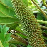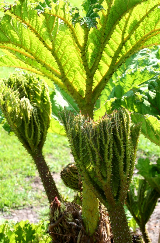 Langwerpige stevige hoge bloeikolf die tegelijk met het blad verschijnt overgaand in vlezige groene kolf bezet met oranje kleine zaadjes, zeer groot stevig, opstaand blad (bij voldoende vocht kan het blad gigantisch groot worden), gestekelde stengel en onderzijde blad, polvormend, voedzame zeer vochtige grond, geschikt voor waterkant, 's winters afdekken noodzakelijk (blad eroverheen vouwen, gevolgd door dikke laag blad of stro), afkomstig uit Zuid-Brazilië en Colombia.