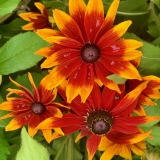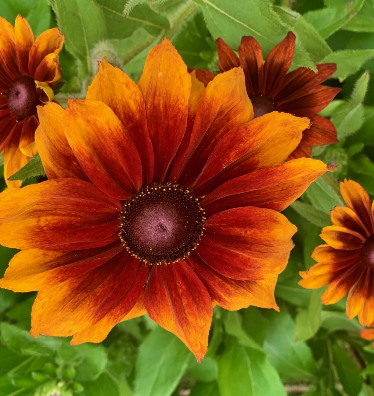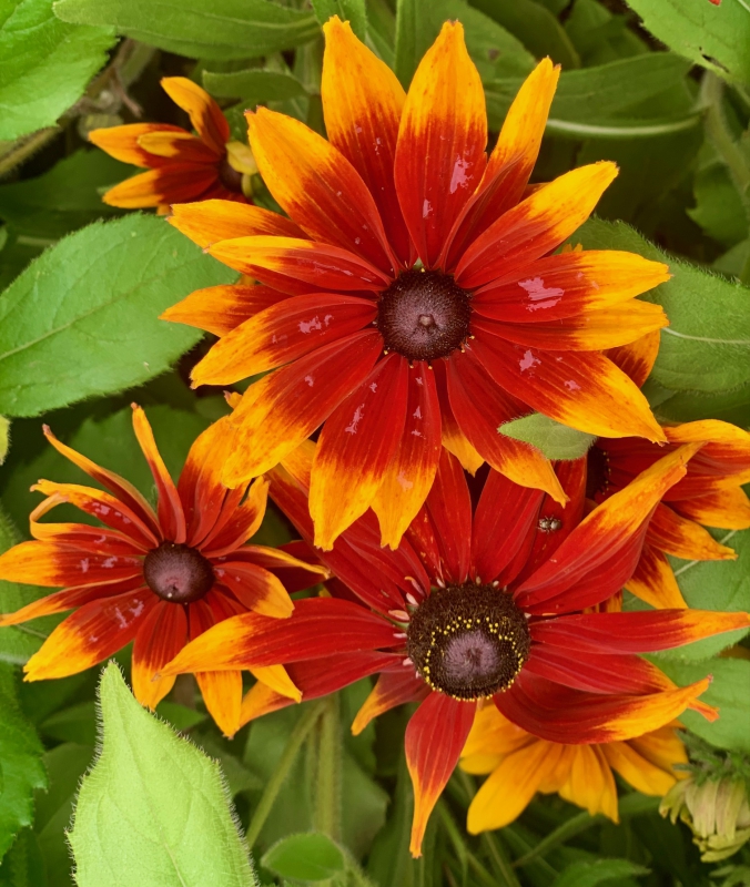 Mooie, rijk bloeiende Rudbeckia, grote bloem, fraai oranje hart
