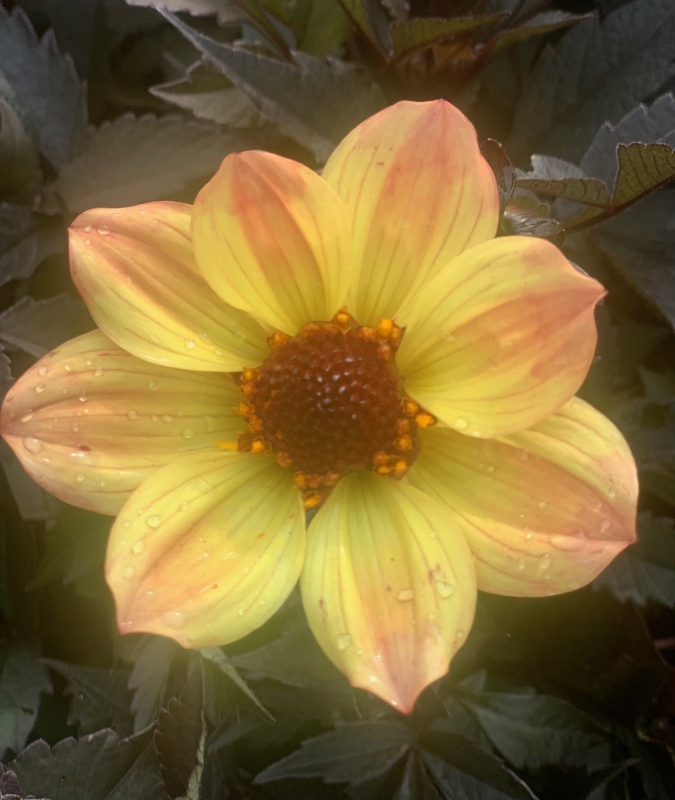 Enkelbloemig, middelgrote bloem met donkergeel hart (circa 9 cm), donkerbladig, compact, ook mooi in pot, goed doorlatende niet te droge voedzame grond, zeer rijk- en langbloeiend, uitgebloeide bloemen verwijderen, knol vorstvrij in donker overwinteren, vlinder- en insectenplant, oorspronkelijk afkomstig uit Mexico en Midden-Amerika.