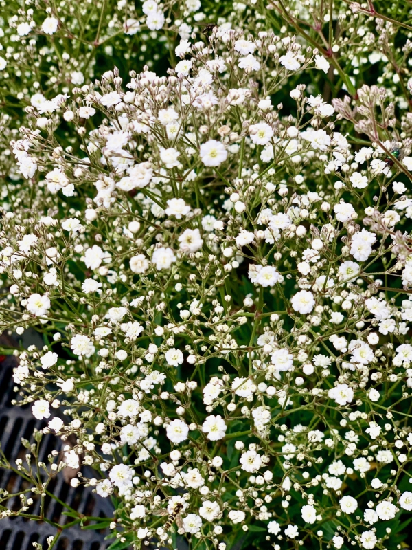 Wolken van kleine witte bloemetjes op lange, vertakte, donkere steeltjes, fijn grijsgroen blad
