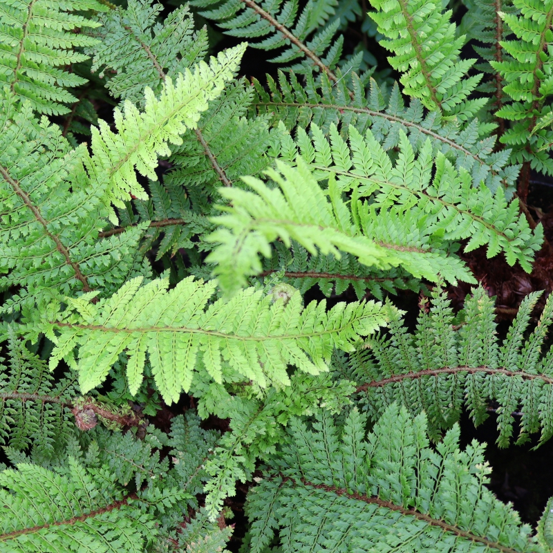 Glanzend, dubbel- tot driedubbel-geveerd blad, dat breed uitvalt, wintergroen