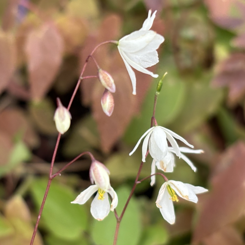 Kleine, elegante bloemetjes op dunnen rode stelen, vaak nabloei
