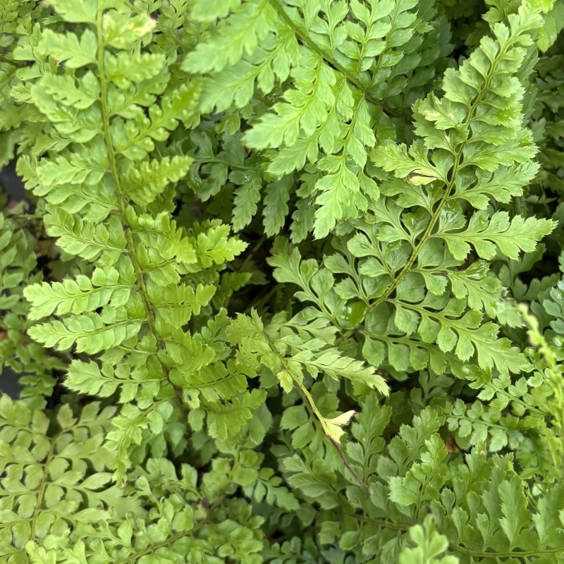 Licht glanzend, leerachtig, zeer diep ingesneden blad, dat mooi blijft in de herfst, halfwintergroen