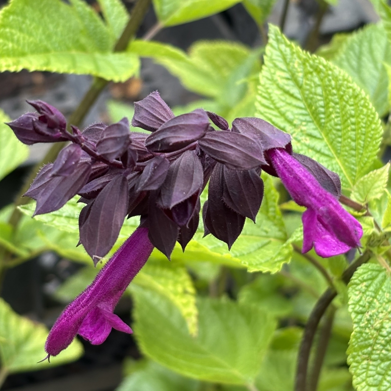 NIEUW - Grote lipbloemen, forse aren, purperkleurige calyx, vlinders, kruising van S. guaranitica en S. splendens