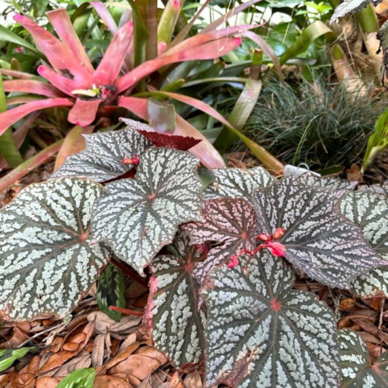 NIEUW - Groot, zilver-paars-roze gemarmerd blad, rode onderkant, trosachtige bloem, winterhard bij goede mulchlaag, loopt laat uit