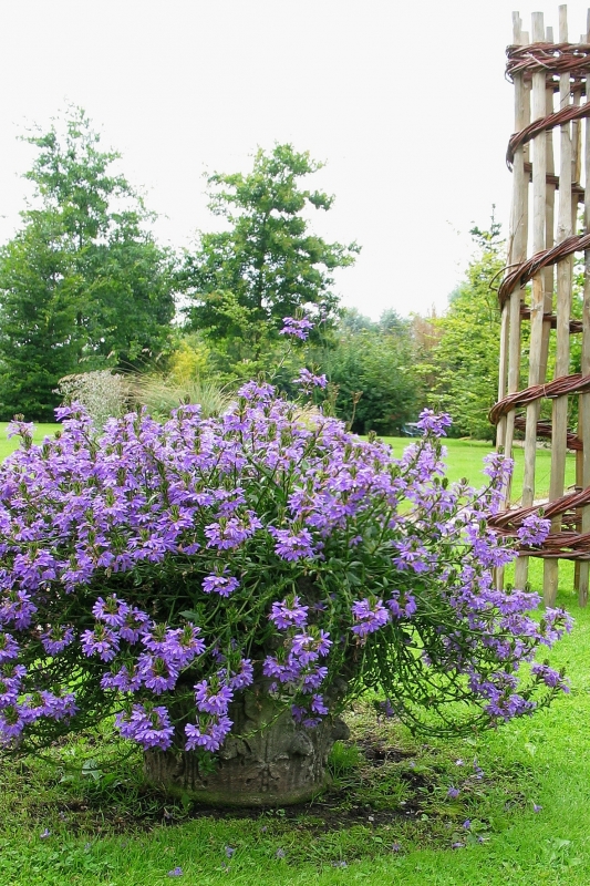 Het is heerlijk op de kwekerij en iedere dag wordt het meer voorjaar. De meeste eenjarigen zijn inmiddels buiten; de eerste komen zelfs al in bloei. Ook hebben we weer grote potten Scaevola aemula. Vaste klanten kennen hem zeker; de rankende plant die in blauw, wit of roze bloeit van mei tot in november.