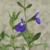 Korte behaarde helmvormige bovenlip, brede onderlip met lichte keel, purpergroene kelk, rijk- en doorbloeiend, heesterachtige groeiwijze, klein blauwgrijs blad, goede drainage, verdraagt droogte, insectenplant, beschutte plek, bij strenge vorst afdekken of vorstvrij overwinteren, insectenplant, oorspronkelijk afkomstig uit Mexico en Zuidelijke Staten van Noord-Amerika, selectie van Foltz, genoemd naar de in 2025 overleden tuinvriendin Audrey Doeglas.