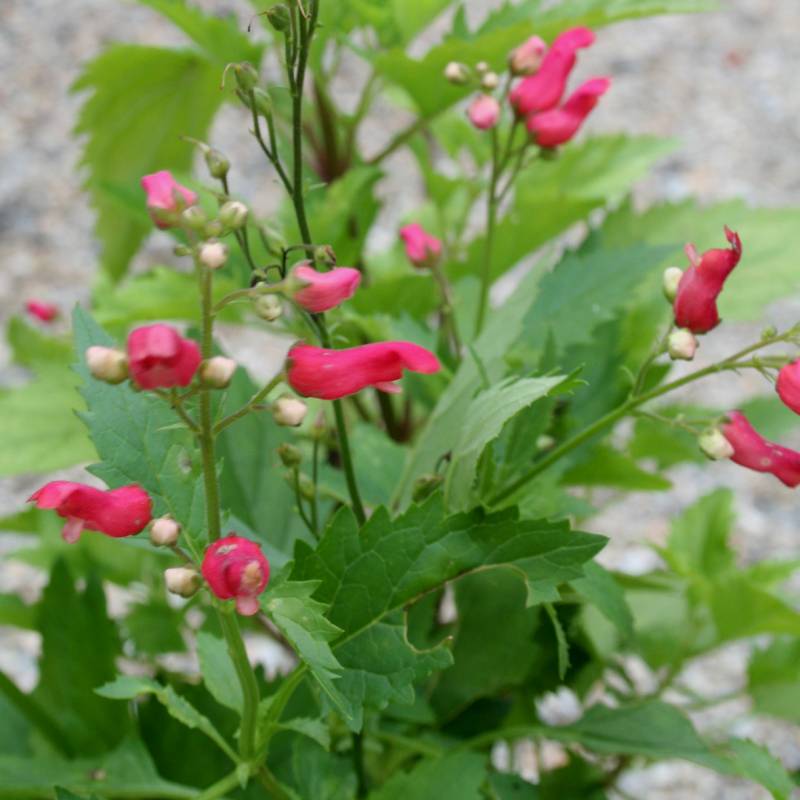 Bijzonder gevormde kleine opstaande bolvormige buisbloem, witte bloemknop, luchtig vertakte bloemaar, zeer rijk- en langbloeiend, donkergroen ingesneden blad, droge warme plek, goede drainage, insectenplant, bij strenge vorst afdekken of in pot vorstvrij overwinteren, afkomstig uit Nieuw-Mexico.