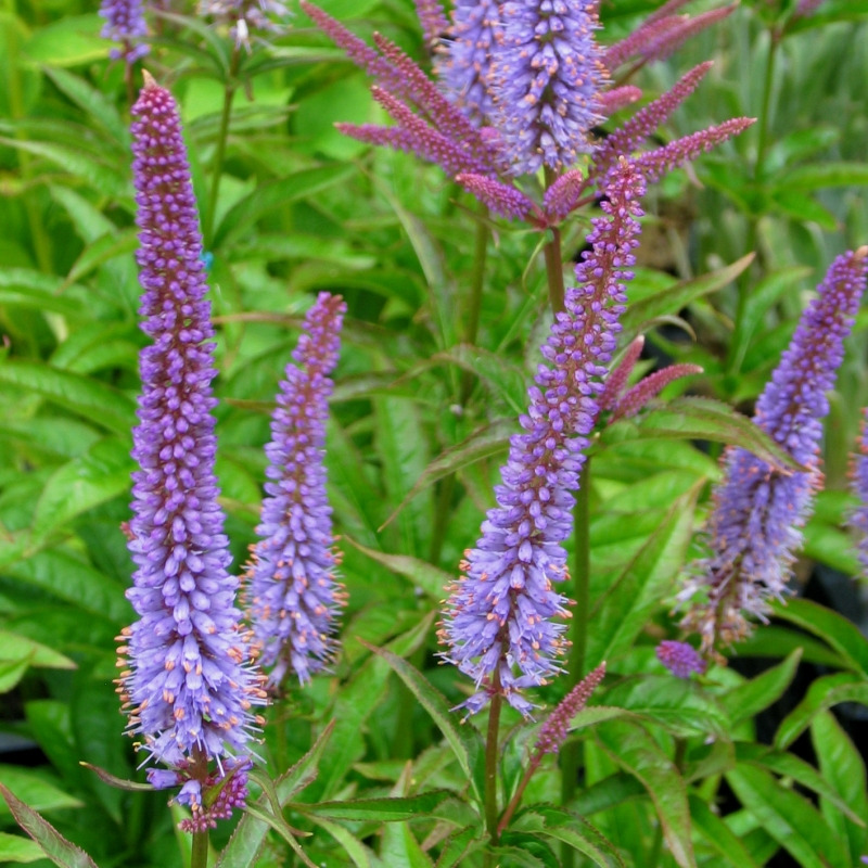 lange dichte bloemaar, stevige strakke vertakte bloemstengel waarbij de zijtakken tegelijk bloeien als hoofdtak, lilarode bloemknop, rijk- en langbloeiend, jong bruinrood blad, kransvormig smal groen blad, strak opgaande pol, humusrijke niet te droge grond, insecten- en vlinderplant, oorspronkelijk afkomstig uit Japan, Korea, China en Oost-Siberië, selectie van Coen Jansen