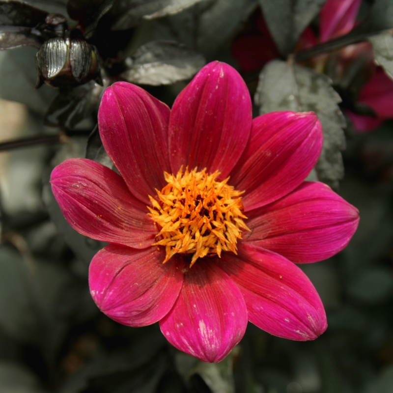 NIEUW - Prachtig, die donkerrode enkele bloem bij het bijna zwarte blad. Eye-catcher.