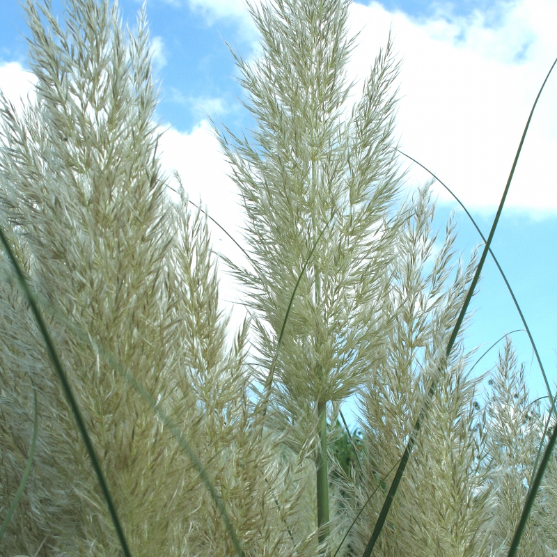 Uitzonderlijk lichte bloeipluimen, hard, dofgroen blad, fraai winterbeeld, verdraagt zeewind