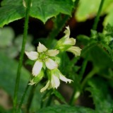 Kleine klokvormige bloem, grote luchtige bloemtros aan hoge bloemstengel, purperrood jong blad, zeer groot glanzend blad, forse plant, vochtige humusrijke grond, afkomstig uit Zuid-Japan.