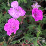 Grote komvormige roze geaderde bloem, zeer diep ingesneden fijn donkergroen behaard blad, dicht bebladerde pol, compacte groei, rijk- en langbloeiend, niet veeleisend, warme droge plek, herfstkleur, ook geschikt voor rotstuin, insectenplant, afkomstig uit Engeland