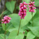Glanzend, purperrood blad, grote roze bloem, goed winterhard, mooi met grassen